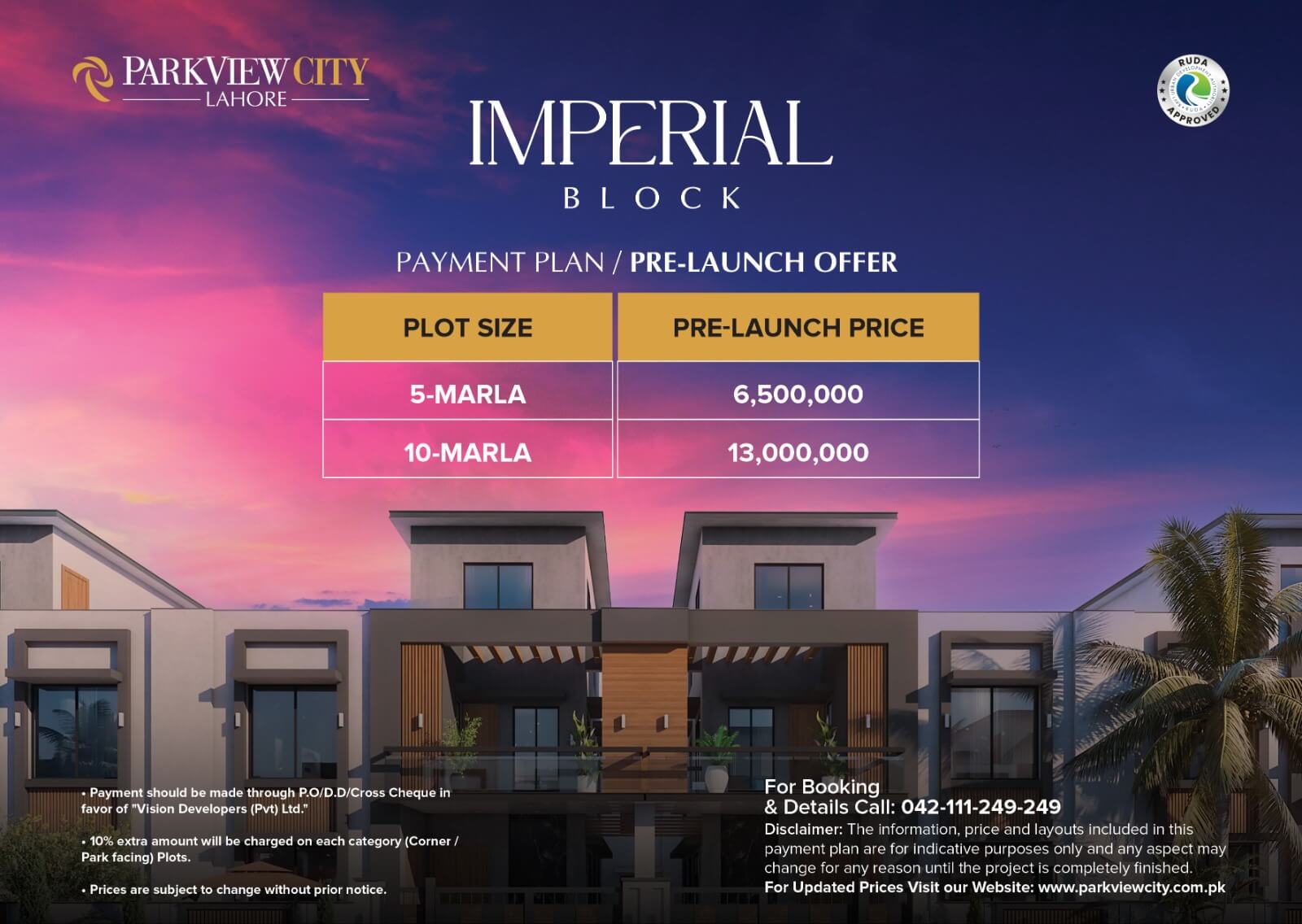 Invest in one of the most sought-after plots in Imperial Block, Park View City Lahore. This 10 Marla park-facing residential plot offers modern living, a prime location, and strong investment potential.
