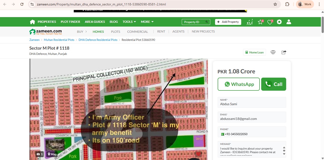 I’m Army officer. Want to sell my 1 kanal residential plot.
