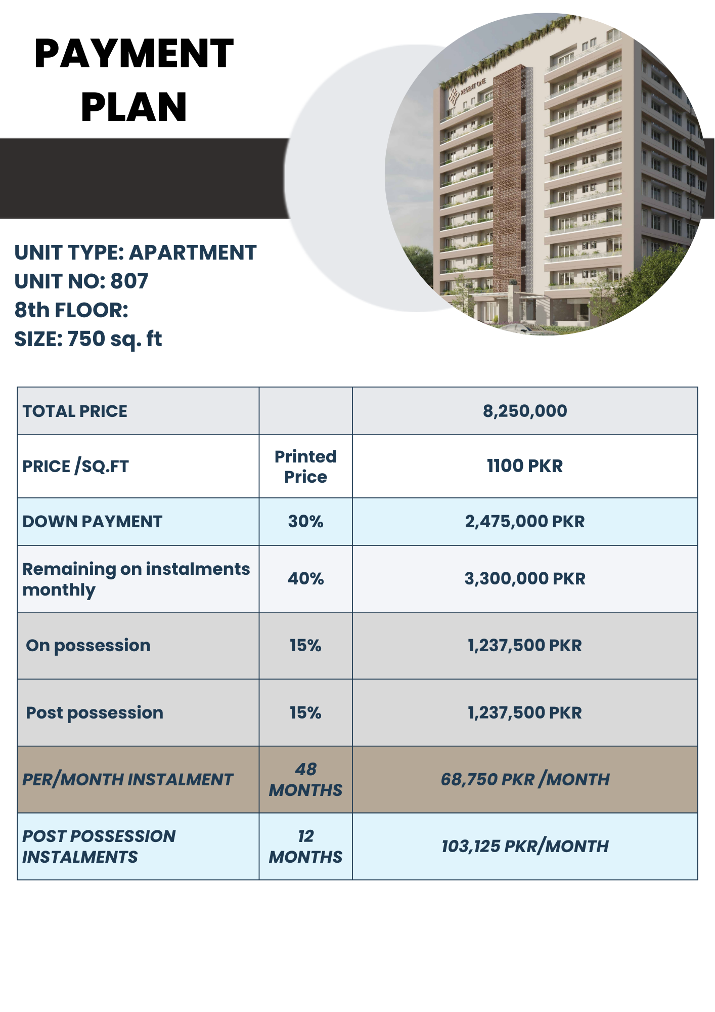 Regent One – 1 Bed 750 sqft (Launching rate)